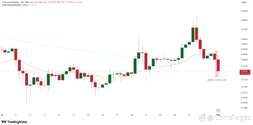 Pi Coin just took a brutal hit, plunging 7% in 24 hours after a dangerous bearish EMA crossover was confirmed on the 12-hour chart, signaling immediate downward pressure. However, beneath the surface of this decline, two internal metrics RSI and CMF are flashing early relief signals, suggesting the current sell-off might be closer to its end than its beginning. This is the urgent analysis of why Pi Coin's next move is a simple 4% toss-up that will either launch a recovery or trigger a deeper crash.