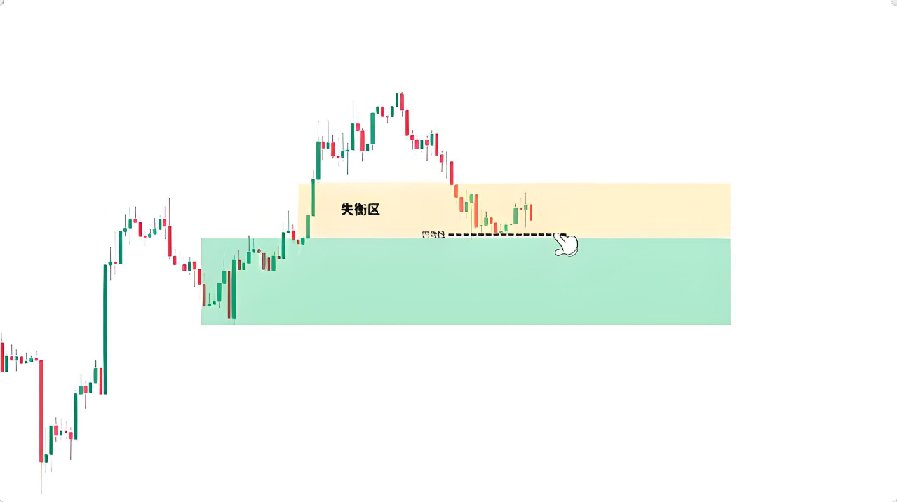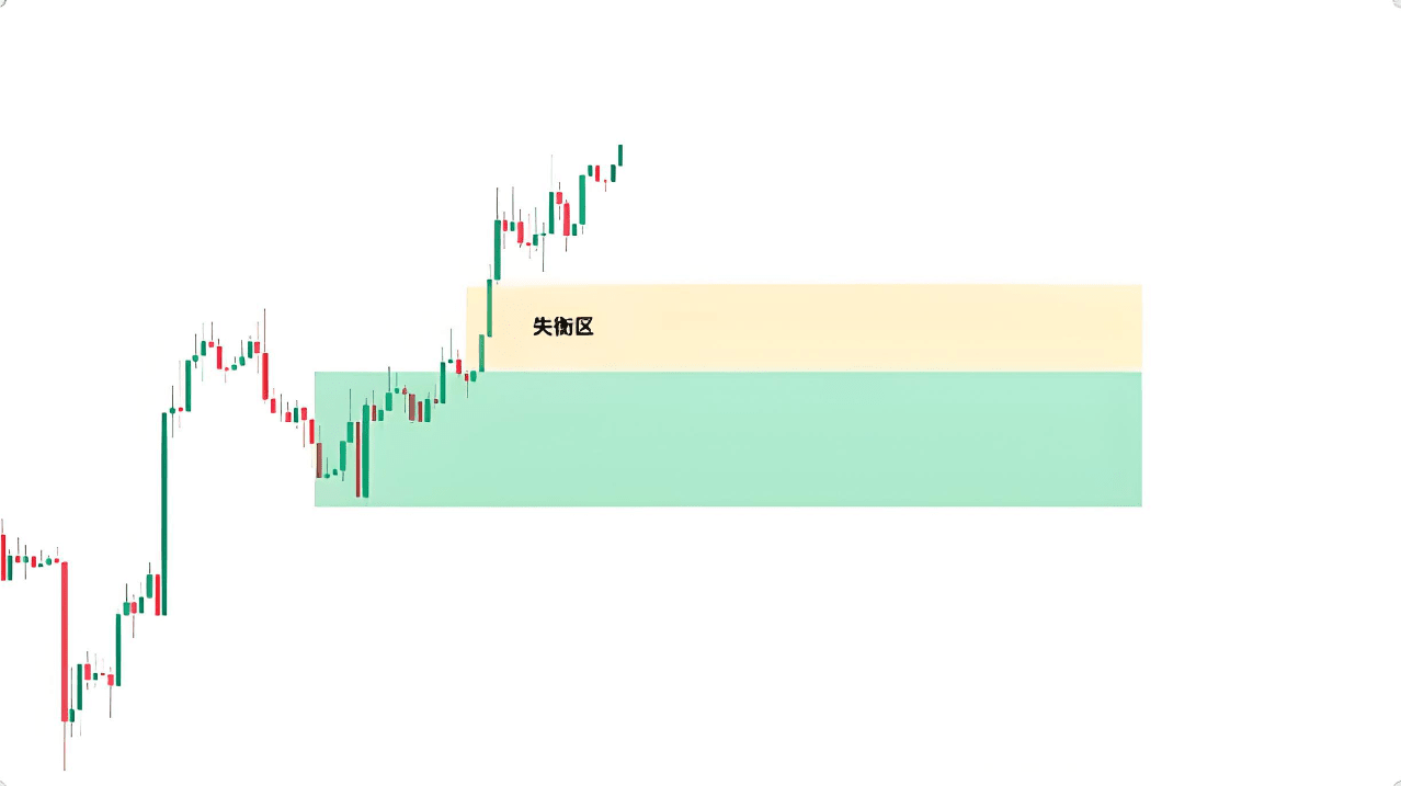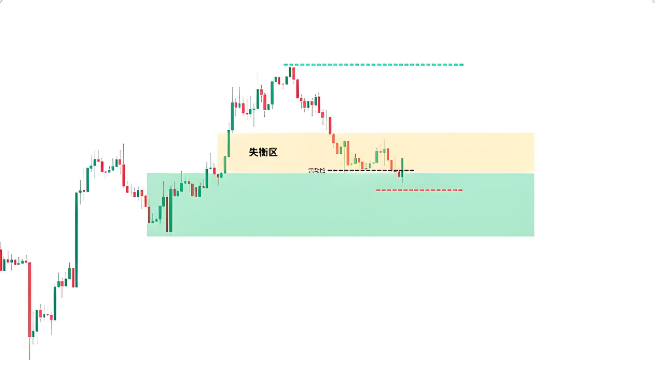 The imbalance zone is a "price gap/rapid movement range" caused by a severe imbalance between the buying and selling forces, with almost no trading volume.