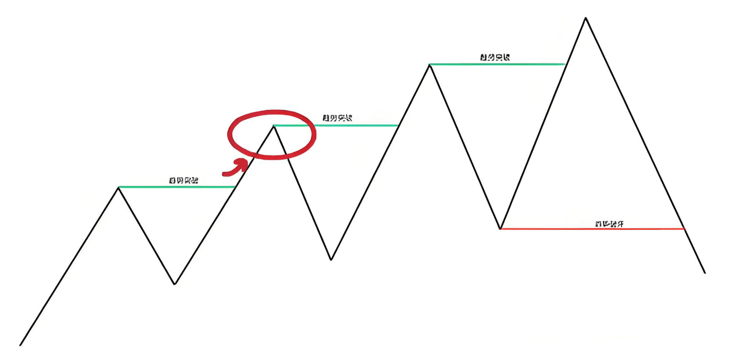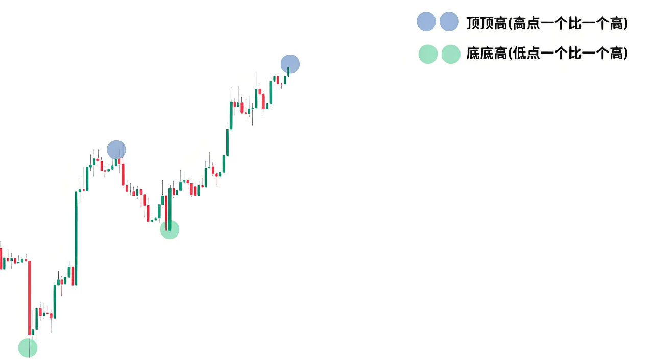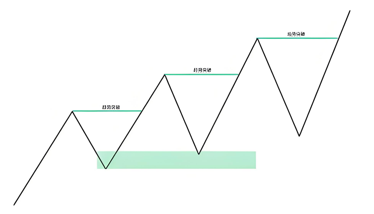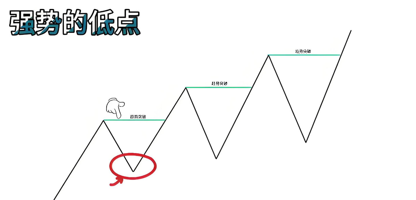 In an uptrend: prices will continuously form "strong lows + weak highs". Each new strong low can draw a new demand zone, and a pullback to the demand zone is a buying opportunity.