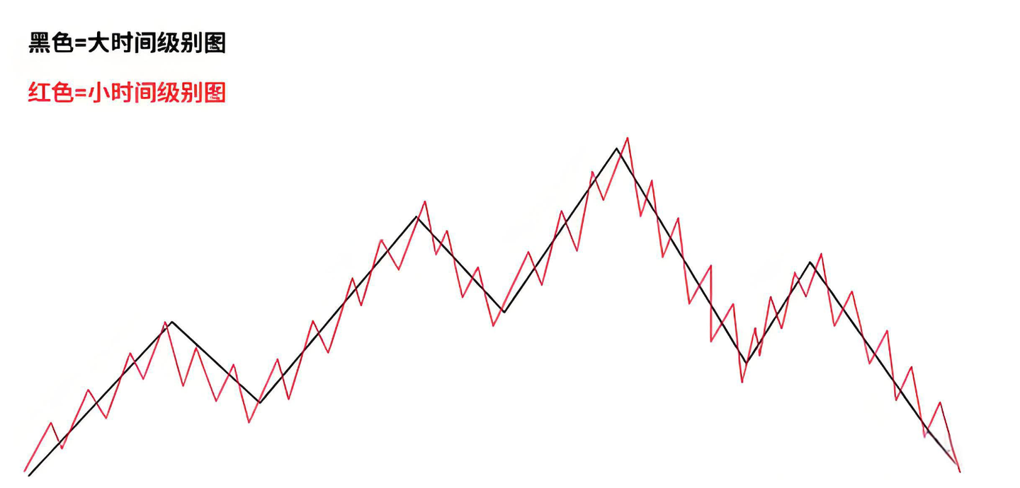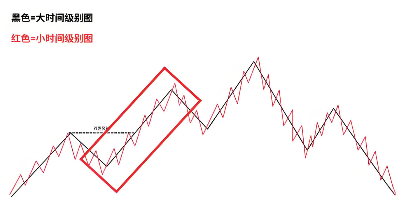 Price trends repeat across different timeframes. Using "longer timeframes to determine direction, and shorter timeframes to find opportunities" allows for precise tracking of smart money movements.