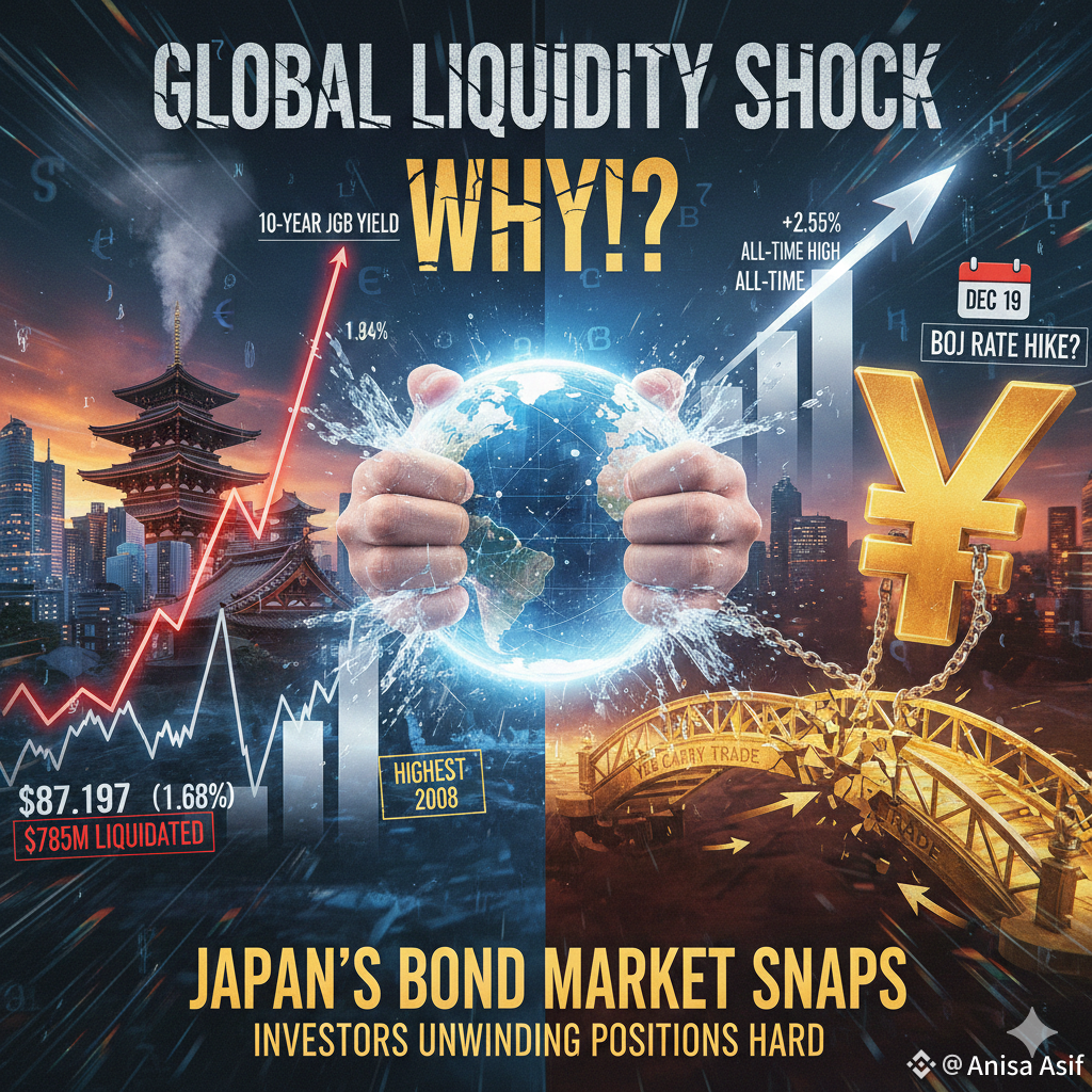 Crypto faced a sudden jolt as $785M got liquidated within hours, sending BTC and major altcoins into instant volatility. But the real cause isnโt cryptoโฆ itโs Japanโs bond market breaking for the first time in decades.