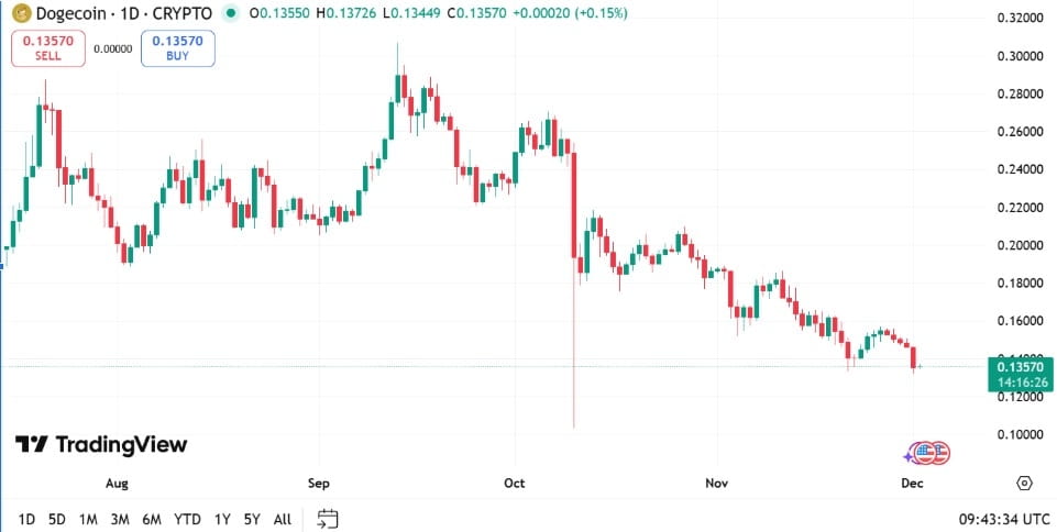 Additionally, the daily chart of Dogecoin also shows a continuous decline since the end of September.