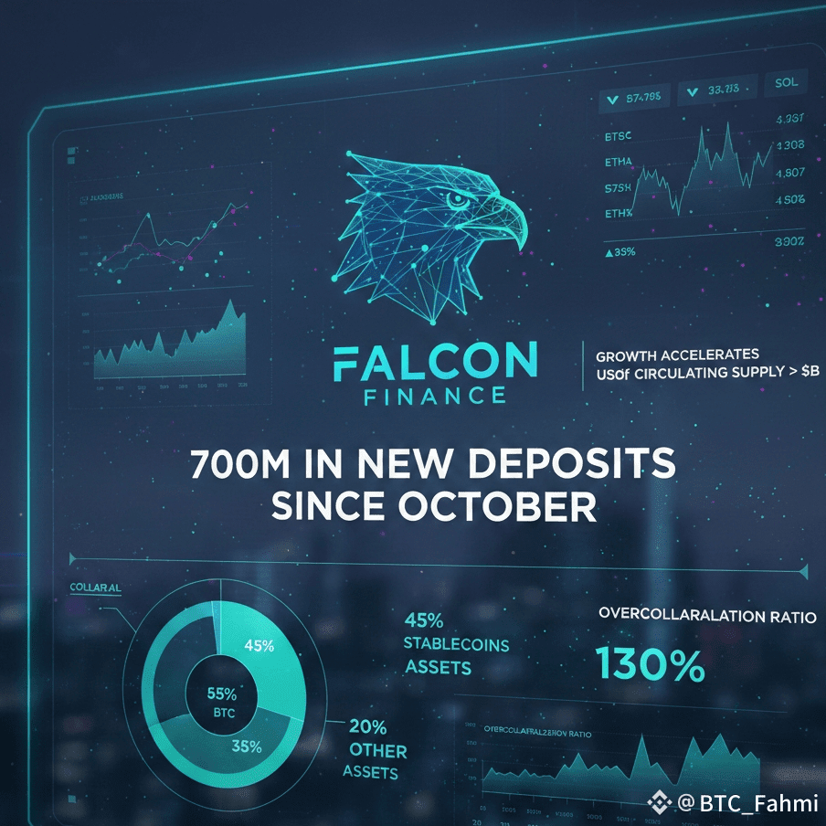 If you’ve been watching stablecoin and DeFi flows since Q4 kicked off, you’ve probably seen Falcon Finance and its synthetic dollar USDf creeping into your feed more and more. The big inflection point came on October 10, 2025. During a sharp market drawdown that flushed a lot of leverage out of majors, Falcon reported more than $700 million in new deposits and fresh USDf minting in a very short window. Shortly afterward, USDf’s circulating supply pushed past $2 billion.