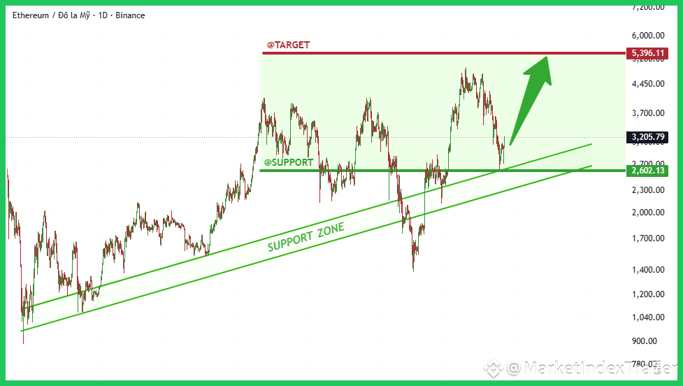 The Daily chart confirms that the recent downturn was simply a healthy retest of the major rising Support Zone. Critically, $ETH bounced cleanly off the previous horizontal structural support at $2,602. As long as we hold within this channel, the bullish momentum remains intact. The path of least resistance points directly toward retesting the all-time high zone and the identified target resistance at $5,396. A close below the lower trendline of the support zone would invalidate this aggressive bullish outlook.