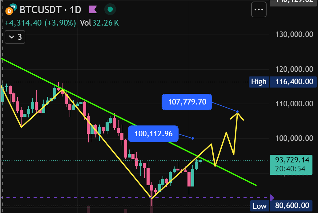 Right after the breakout, $BTC aiming for the first target area around $100K – which is also the retest point of the previous down structure. If it continues to maintain momentum, the $107.5K area will be the next target before hitting the High area of $116K.