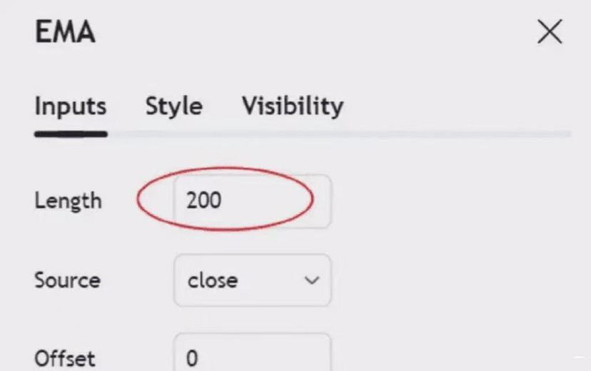This is quite simple. We add an EMA indicator and change the parameter to 200, as shown in Figure 2.4-18, which represents the EMA setting of 200.