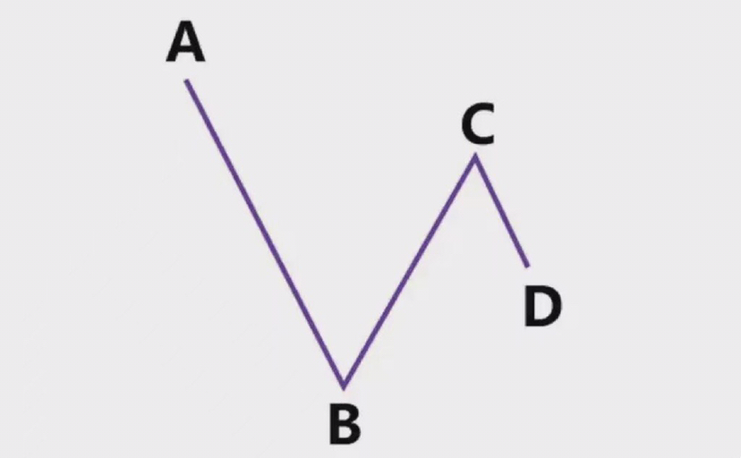 We can see that the price fell from a high point A to a low point B, and then rose to a high point C. Point C did not break through the previous high point A. Now the price is at point D. How should we draw this chart? Should we draw it based on the high and low points AB, or on the high and low points BC?
