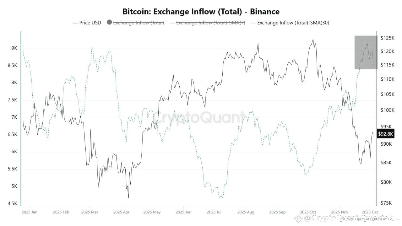 On-chain data from Binance reveals a critical warning for Bitcoin. The 30-day moving average (SMA) of total exchange inflows reached a 2025 peak of 9.17K on November 28th. This is a significant bearish indicator, suggesting that selling pressure is at its highest level this year.
