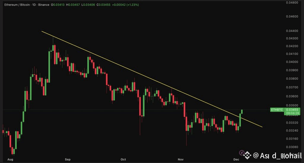 Whenever ETH/BTC breaks out like this, liquidity starts moving from #BTC → #ETH → #ALTS .