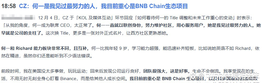 The meaning is very simple—he has already transformed from a trader into a strategic figure. What does this mean for the BNB ecosystem? In one sentence: