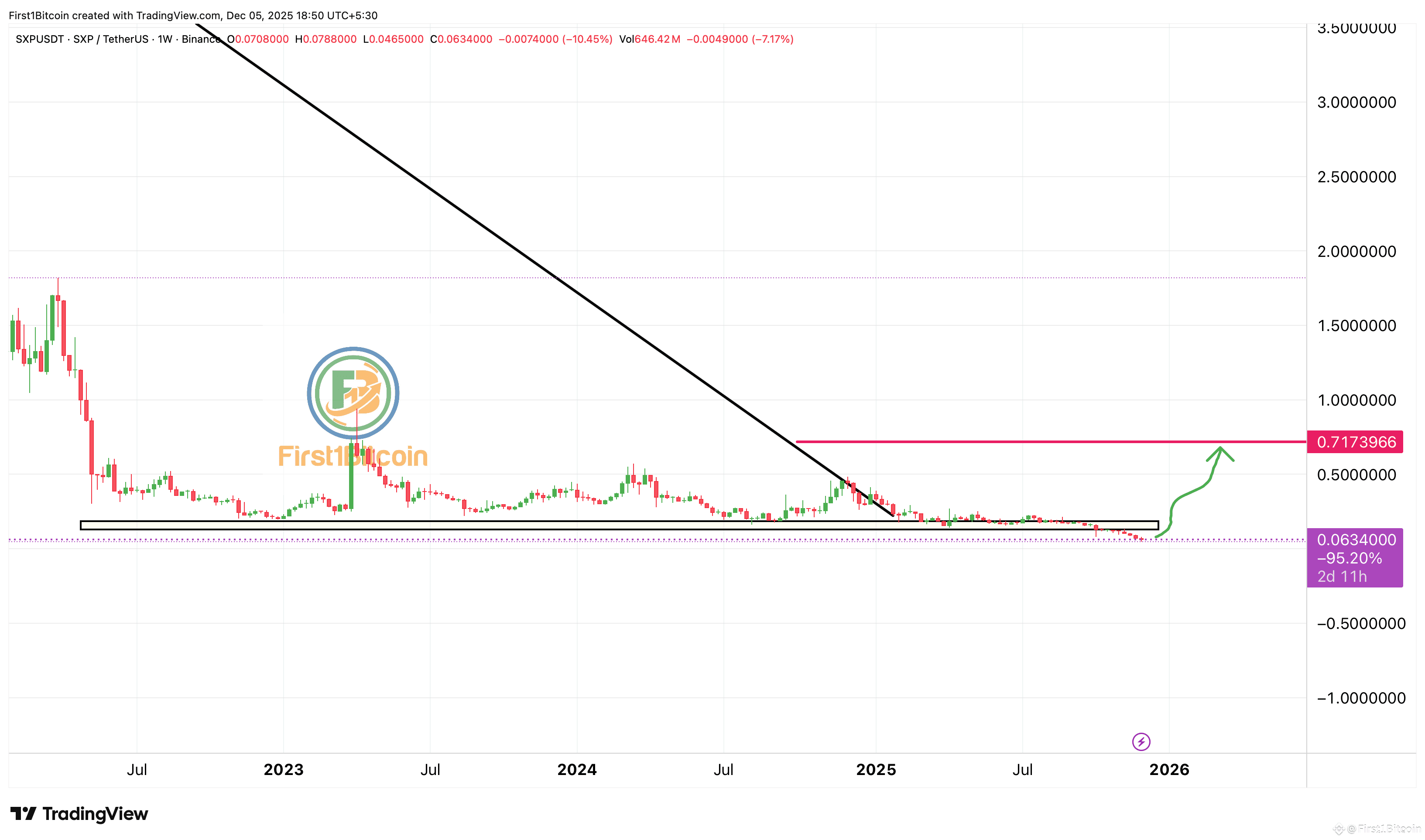 SXPUSDT is grinding along a multi-year support floor after a 95% drawdown, with early signs of a potential reversal forming.