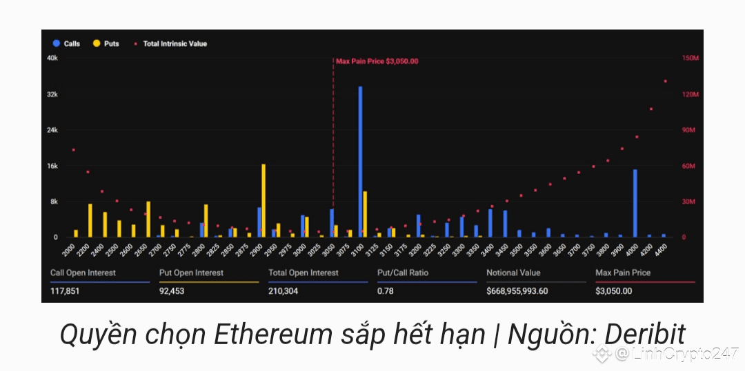 ETH’s maximum pain level is $3,050, while current price trades near $3,180