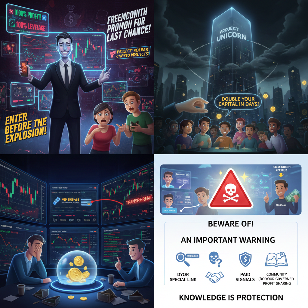 The cryptocurrency market today is witnessing a significant wave of misleading content, and promoters seeking personal profit at the expense of their followers. While many new traders eagerly enter the market, they find themselves falling victim to false recommendations, suspicious projects, or illegitimate platforms… especially in Futures trading, where the level of risk and losses rises dramatically.