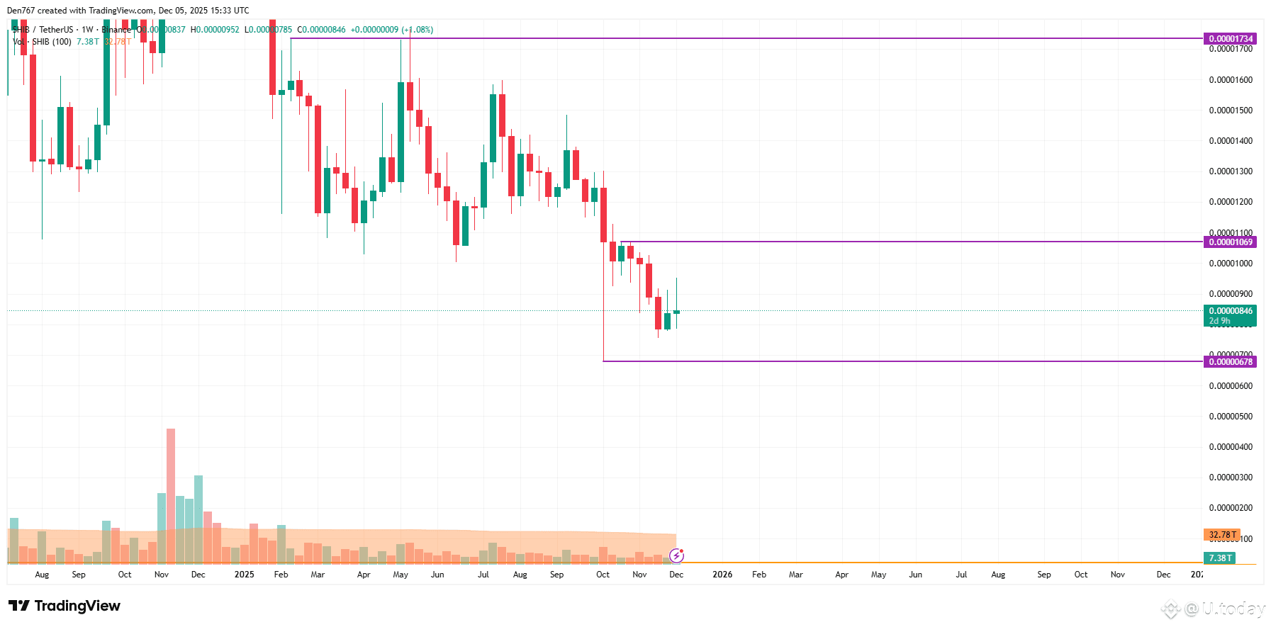 However, if the weekly bar closes near $0.000007, the accumulated energy might be enough for a level breakout, followed by a test of the $0.0000060 area.