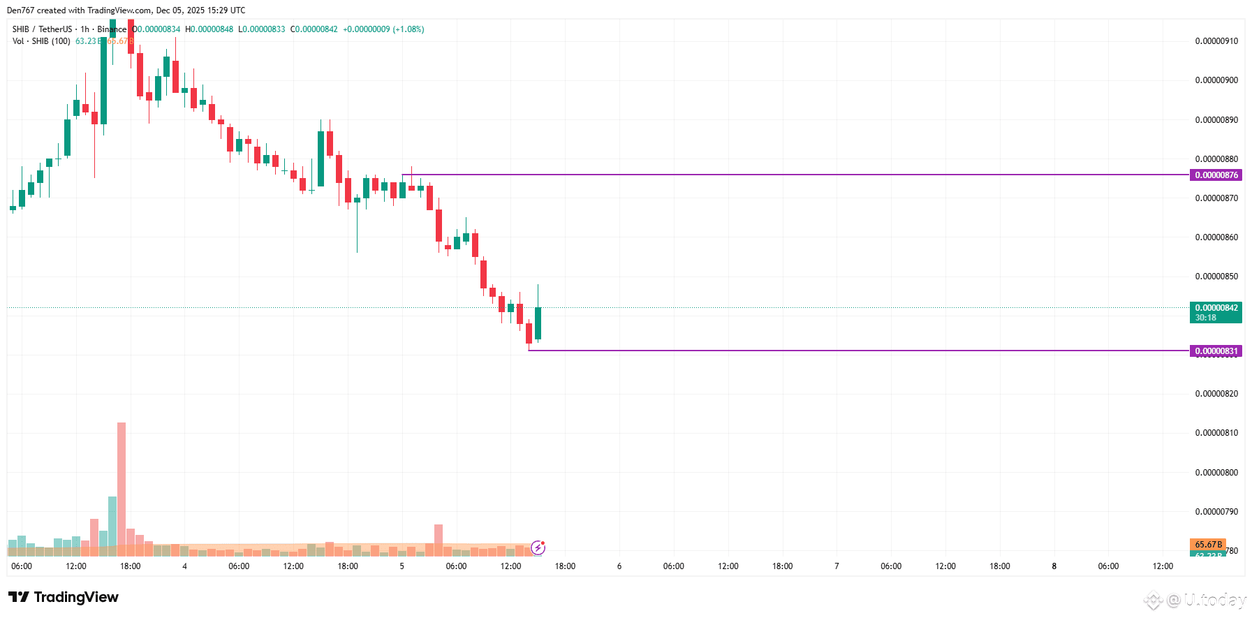 On the hourly chart, the rate of SHIB might have set a local support of $0.00000831. If the daily candle closes far from that mark, one can expect a test of the $0.00000870 area by tomorrow.