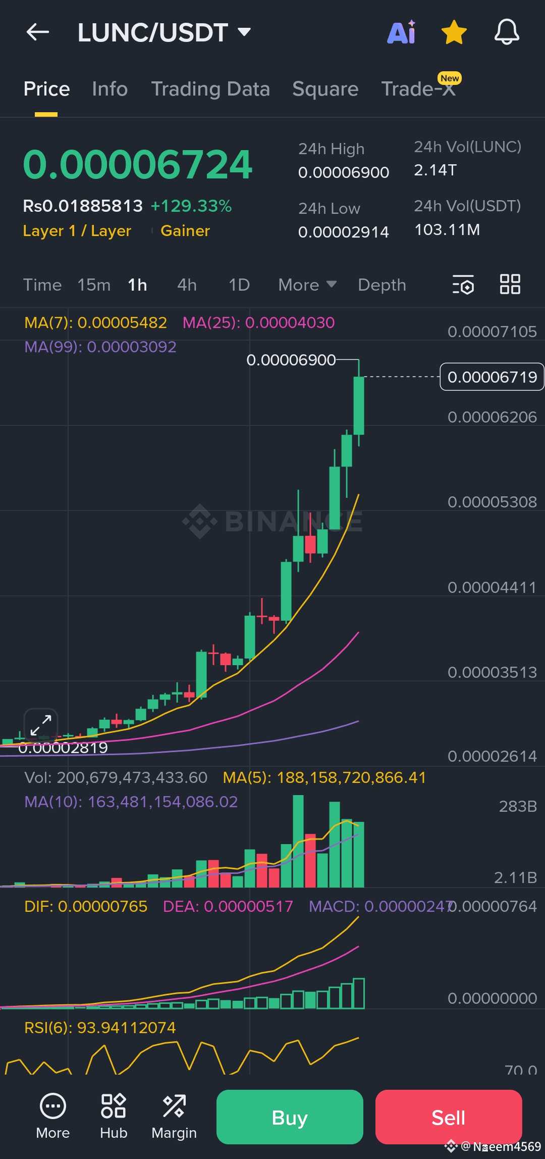 LUNC is currently in a powerful uptrend driven by heavy buying and high market excitement. While the momentum remains strong, traders should remain cautious due to extreme overbought signals and the parabolic nature of the move. Short-term fluctuations are expected, but overall sentiment remains bullish as long as key support levels hold.