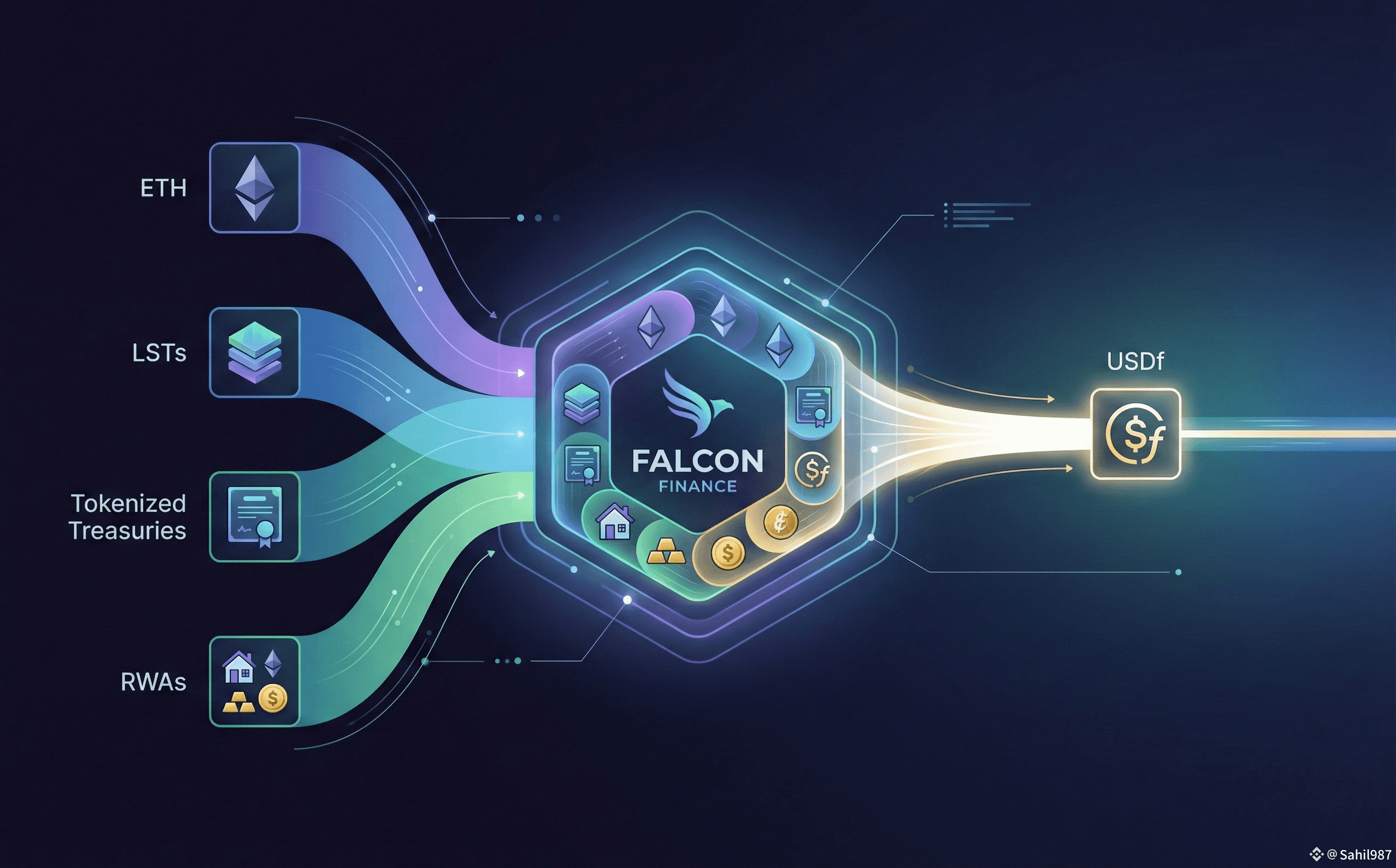 Every ecosystem eventually reaches the point where the tools it relies on stop matching the ambitions it carries. DeFi has been quietly drifting toward this moment for years. The promise of programmable money grew faster than the infrastructure needed to support it. Assets could stake, wrap, tokenize, or fragment but the moment they tried to serve as collateral, the system demanded they become still. RWAs lost their cash-flow identity. LSTs lost their validator-linked yield. Tokenized treasuries lost their maturity characteristics. Even ETH the lifeblood of on-chain finance was stripped of its expressive qualities whenever it entered a collateral framework. This was not a failure of imagination; it was a failure of architecture. Falcon Finance emerges not with the bravado of “new DeFi,” but with the quiet conviction that the architecture is finally ready to treat liquidity not as a secondary feature, but as a first-class citizen. The shift feels understated, yet its implications are enormous. Falcon isn’t redefining value; it’s recalibrating the rails through which value moves.