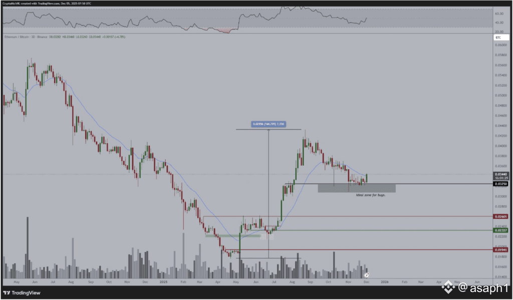 Estamos viendo a Ethereum (ETH) en un momento que los expertos llaman "compresión". Imagínate un resorte que se aprieta y aprieta, y cuando se suelte, la explosión es enorme. Técnicamente, el par ETH/BTC está tocando un soporte (un piso) clave que ha aguantado casi todo el año. Varios analistas súper respetados, como Michaël van de Poppe, creen que este piso va a resistir y que, por fin, ETH volverá a superar a Bitcoin (BTC) en ganancias porcentuales. ¡Llevamos meses esperando esto!