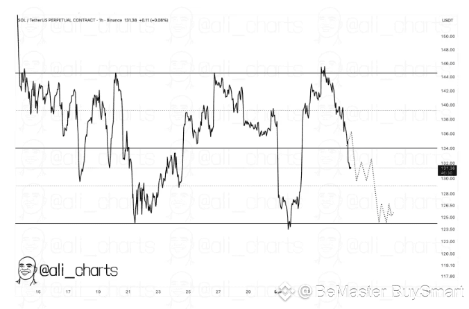 ๐ Solana (SOL) is extending its decline as short-term sentiment cools across the crypto market. SOL could find support around 124 USDT, a level that's being watched as a potential stabilization zone. The 1-hour chart shows SOL trading near 131 USDT, with price moving steadily lower after failing to hold above intermediate resistance.