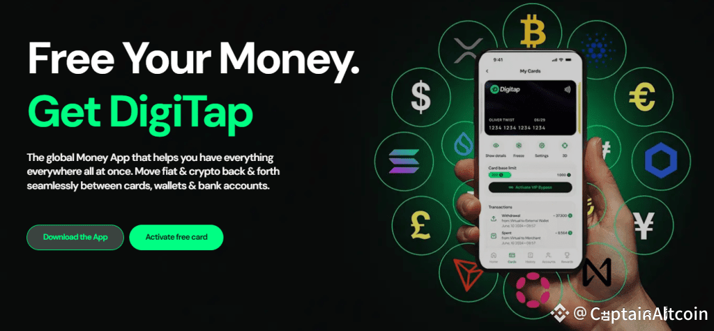Digitap looks to solve the same problem of modernizing global payments, but approaches it from a different angle. Instead of lobbying institutions for adoption, it starts with the end user and builds outward. The team describes Digitap as the world’s first omni-bank. A single global money app where fiat, stablecoins, and crypto live together in one account. The app is live today on iOS and Android, with thousands of users already on board.The interface is deliberately familiar. Balances in more than twenty fiat currencies sit alongside over a hundred supported digital assets, all presented in a clean, neobank-style dashboard. Users can receive funds, swap between currencies, send money across borders, and track everything without juggling multiple apps or dashboards.The real magic happens underneath with the multi-rail design. Digitap can route payments over public blockchains and established legacy rails such as SWIFT, SEPA, ACH, and Faster Payments. Now, instead of paying 6.4% on average and waiting days, international payments cost less than 1% and arrive in minutes.Where Digitap is really beating Ripple is on the distribution front. The project has rolled out a Visa card program with virtual and physical cards, connected to Apple Pay and Google Pay. This means crypto holders can spend crypto anywhere, and the non-KYC virtual card is crushing it—becoming increasingly popular among whales who value their privacy.