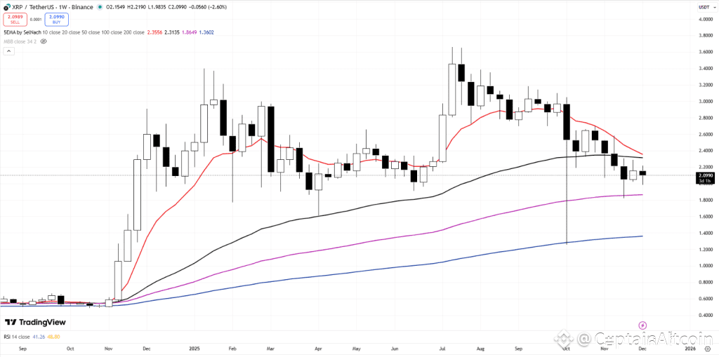 Ripple deserves credit for seeing the opportunity early. Long before stablecoins took off, the XRP team saw the vision of replacing the outdated correspondent banking system with a faster and cheaper ledger. And for many years, XRP was the default banking coin, recognized by institutions and retail alike as the altcoin to buy to bet on the modernization of cross-border flows,The problem has been execution. Convincing banks and large financial institutions to adopt an entirely new rail has been difficult, and the XRP ledger to this day doesn’t process any meaningful volume. Stablecoins have started to dominate, and tokenized dollars have won the race. XRP proved the demand, but stablecoins captured the bulk of the usage.Even today, many retail investors believe that XRP is a top crypto to buy now, but the chart shows a different story. Even while BTC has bounced, XRP remains down only and this type of price action is called distribution when large whales exit.The banking trade is still alive, but the baton is passing to consumer-facing apps that leverage stablecoins and build the best possible experience on top of them. That is where Digitap enters the frame.