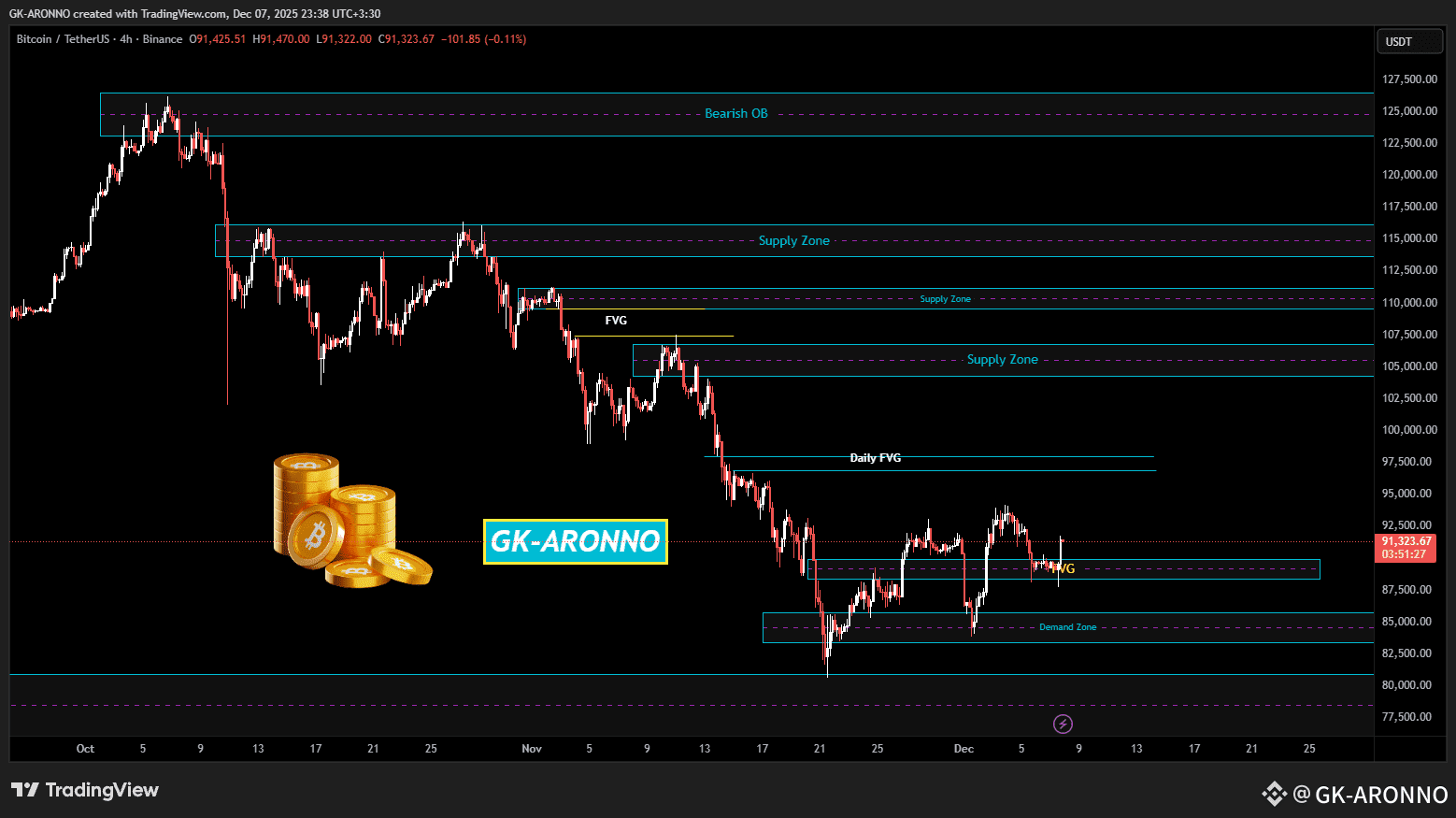 By analysing the 4H BTCUSDT chart, we can see that a fall into the FVG and dropping all the way too $87700, it has reacted positively and is now being traded at $91700!