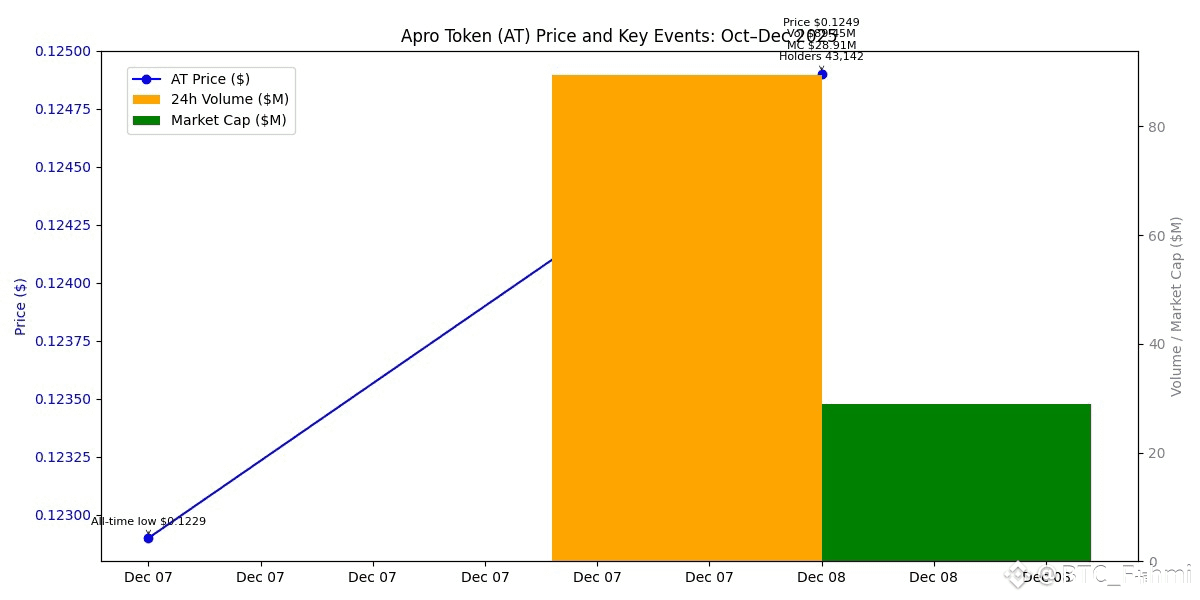 As of December 8, 2025, AT is about $0.1249. It’s down 3.2% over 24 hours and down 45.6% over 7 days, yet it’s still doing roughly $89.45 million in 24-hour volume on a market cap near $28.91 million. That combo screams “attention,” but it also screams “fragile.”