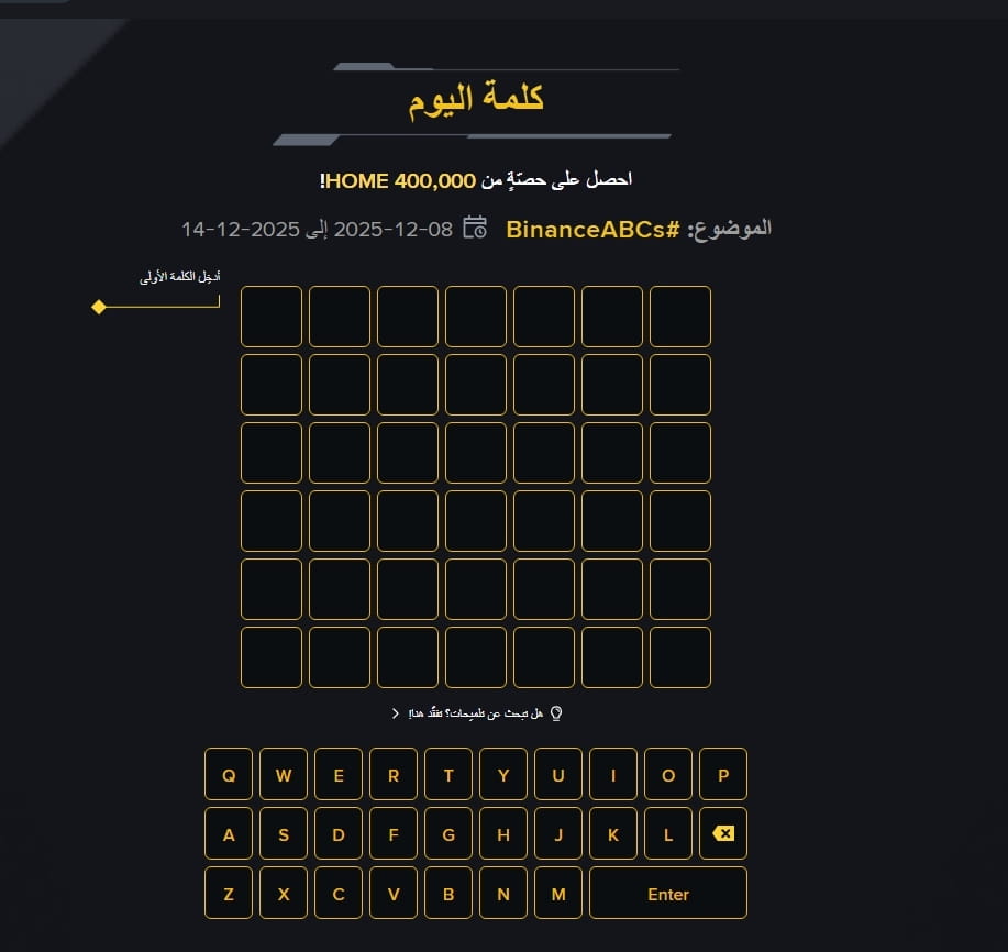 This is a word guessing game provided by Binance daily based on a specific theme related to crypto and Web3 trading. The number of letters is not fixed; it can be 3, 4, or 8 letters depending on your ID on the app.