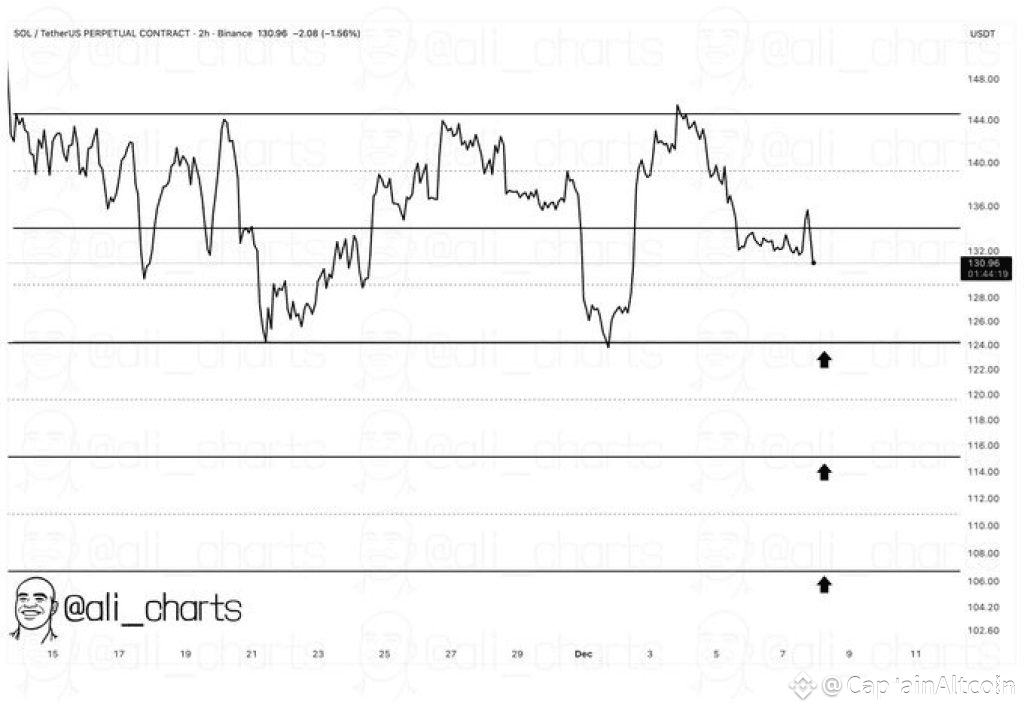 Ali’s message is straightforward: the entire short-term trend depends on $124. Hold it, and the chart stabilizes. Lose it, and the SOL price next move is almost certainly lower.