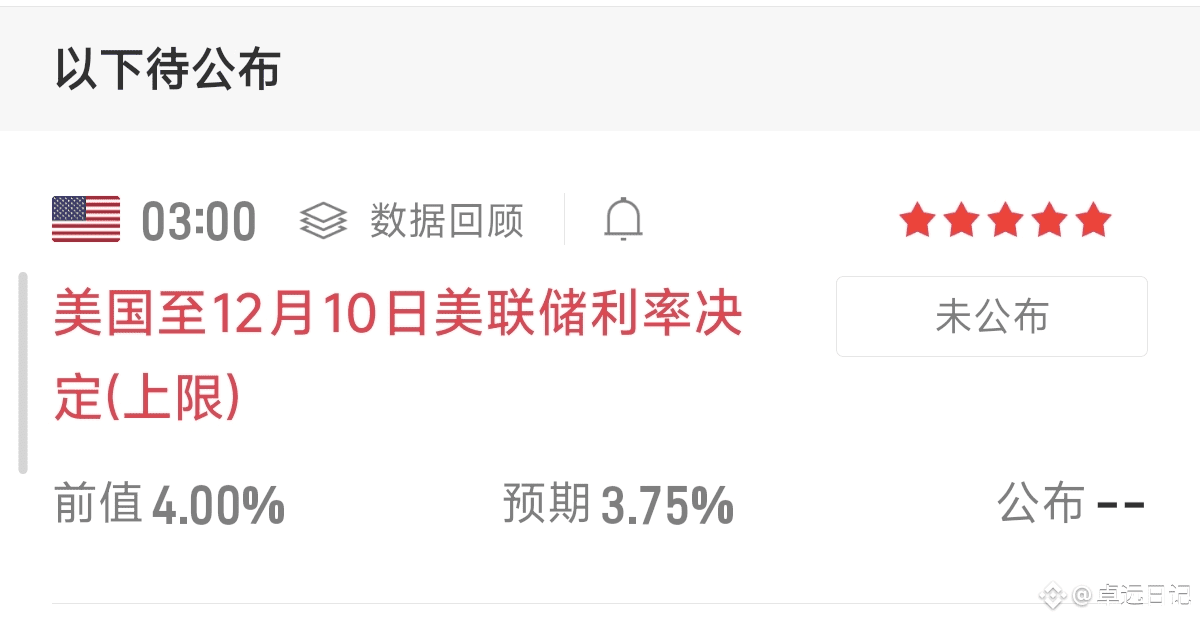 对于周期美联储利率决议我个人建议不要过多的去关注,因为这不是今年的第一次降息它已经降了两次了。第一次影响比较大,大家发现没有第二次降息它的影响已经不大了。这第三次市场目前的预期降息是板上钉钉。在降息之前已经炒作了很久了,真的到时候降息了影响不会太大。最可怕的是万一它不降息这个反而影响大这可能会对美元一个极大的提振,对黄金可能会有一个比较大的利空。我们需要重点关注的是什么?是2026他的一个降息路径,在这次利率决议之后美联储主席鲍威尔他新闻发布会他会陈述这一块包括还有点阵图所以说,重点不在降息重点是在老鲍的讲话和点阵图。