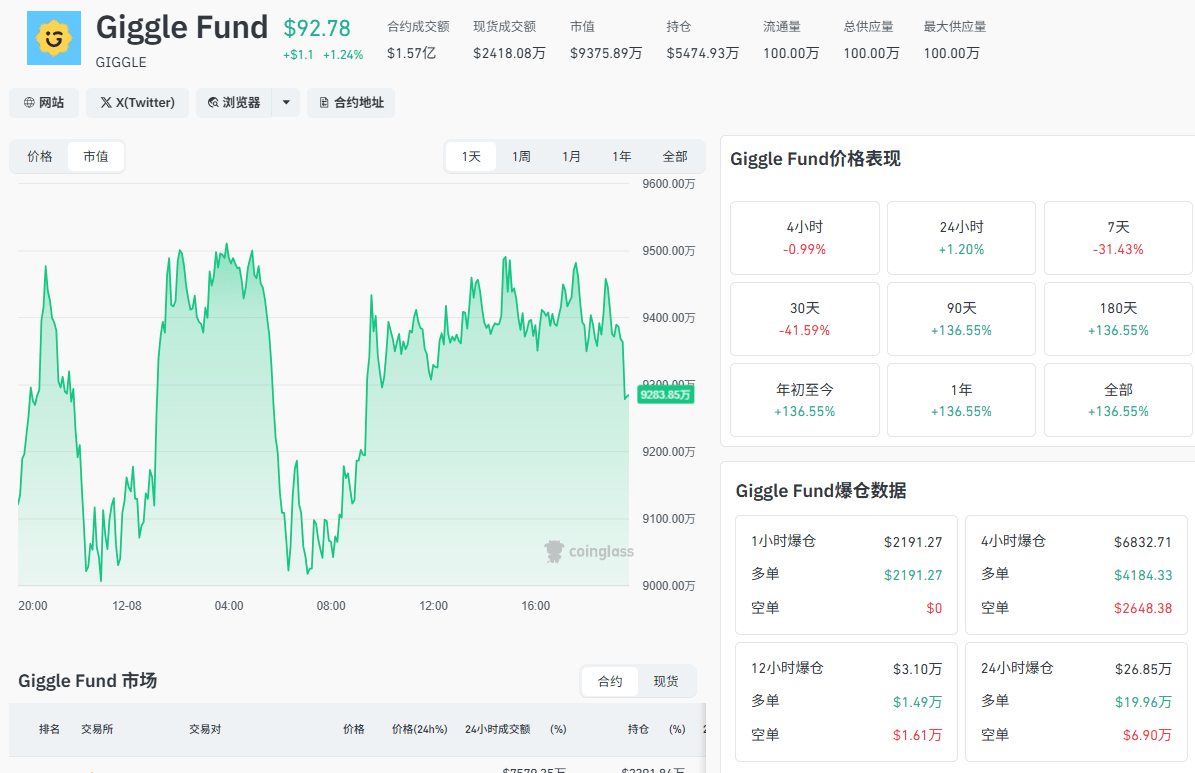 Today, GIGGLE is likely to continue oscillating between 92-101. But remember what Hongcai said: the end of consolidation is an explosion, and what we need to do is not to fidget in the consolidation but to follow up during the breakout!