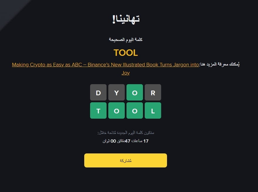 The Binance Word of the Day game is a fun and educational game that helps users learn words related to cryptocurrencies and win them from Binance. So why wait? Start today and earn profits!