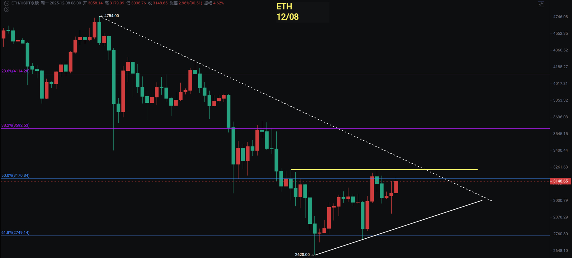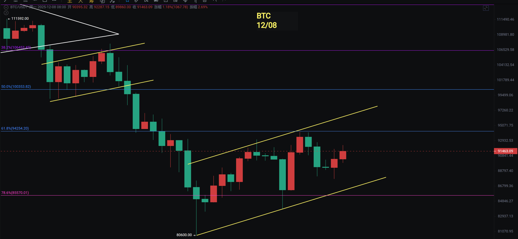 25/12/08BTC short-term continues to rise, the interest rate cut in December is about to come, the shoe dropping is the real risk.