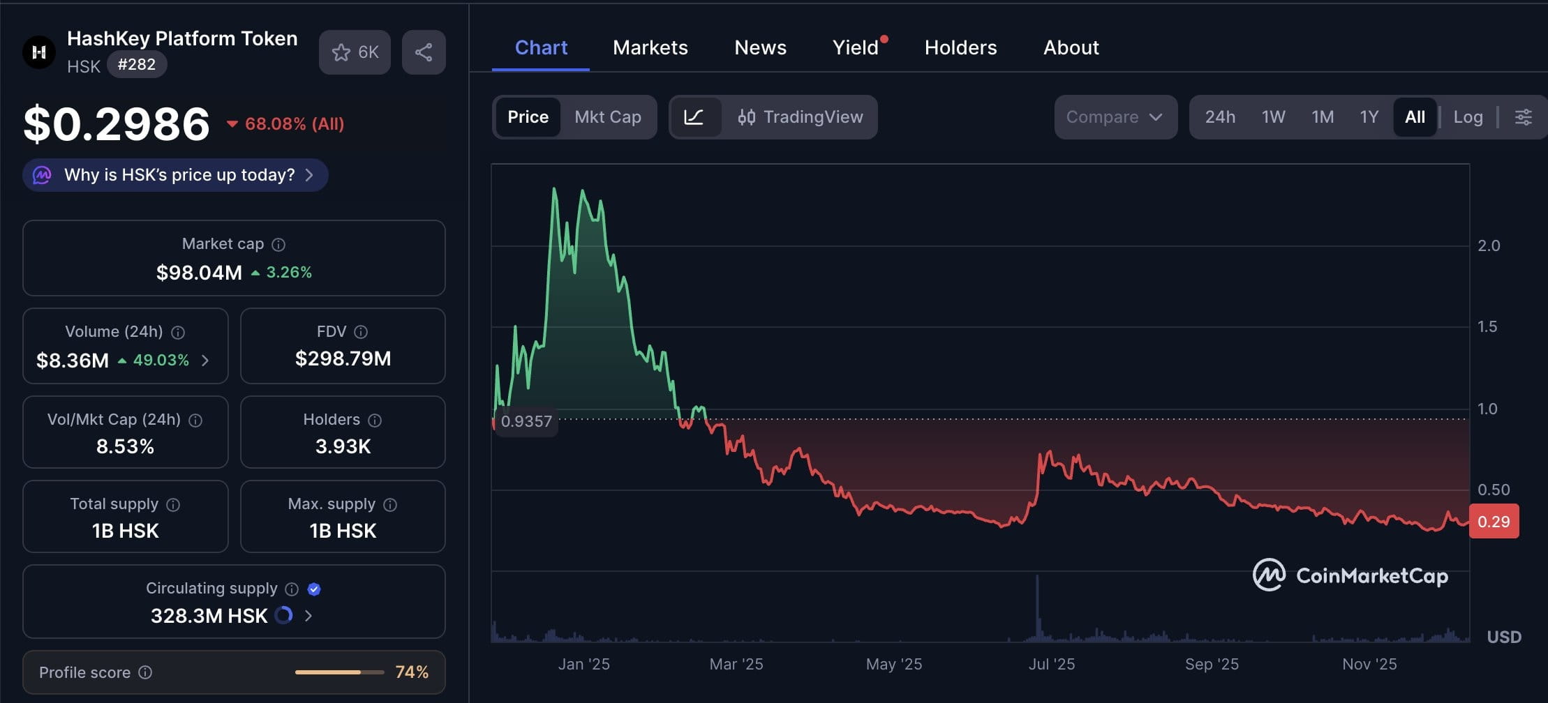 However, under the spotlight and the pursuit of capital, HashKey is not without concerns. The performance of its platform token HSK and the resulting crisis of trust within the community are becoming a shadow behind the company's glory.