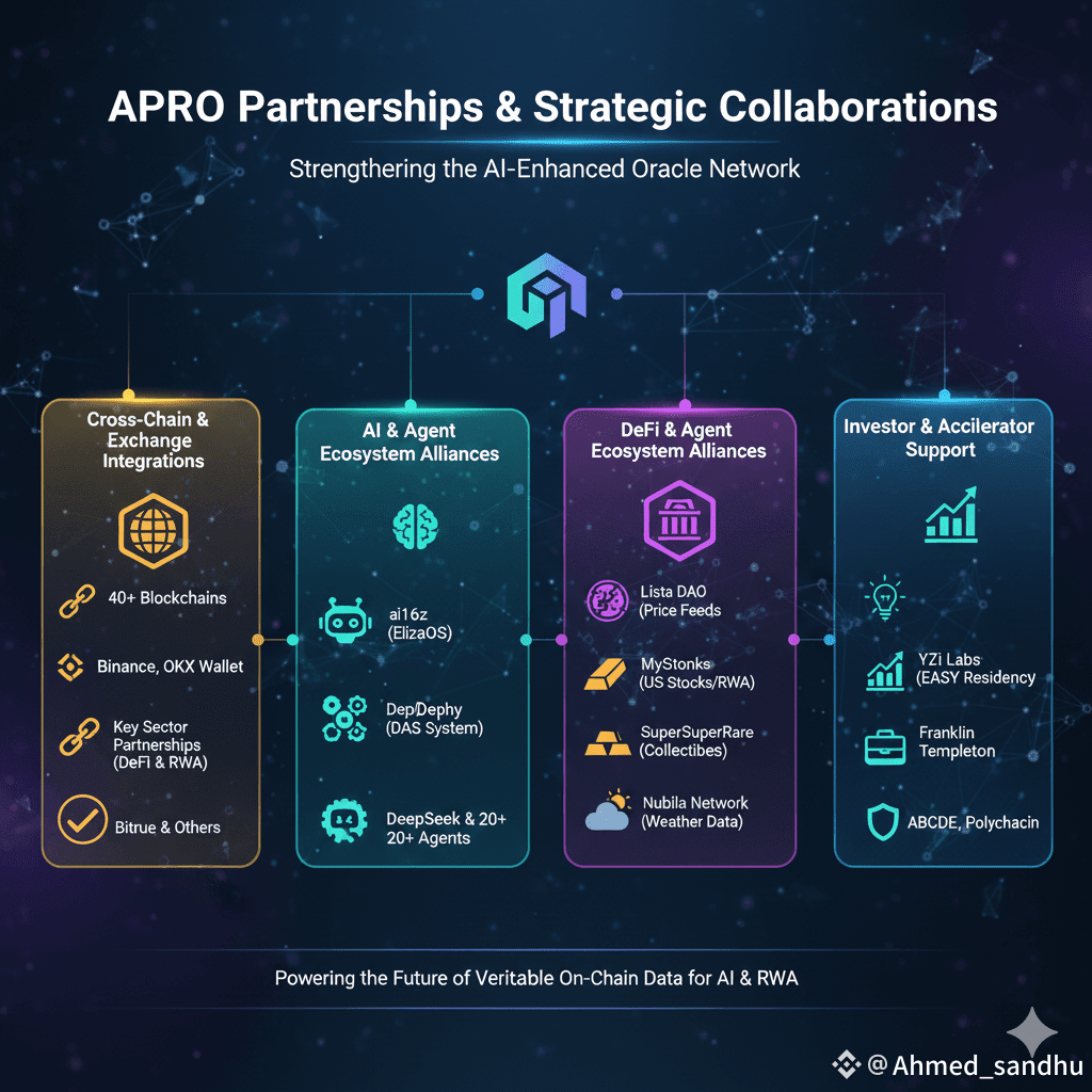 APRO has pursued a "quiet but deliberate" strategy in forging partnerships, prioritizing deep technical integrations that boost the network's utility, particularly in the high-growth sectors of Decentralized Finance (DeFi), Real World Assets (RWA), and Artificial Intelligence (AI). These collaborations are not merely marketing announcements; they are technical integrations that drive real-world data consumption and $AT token utility.