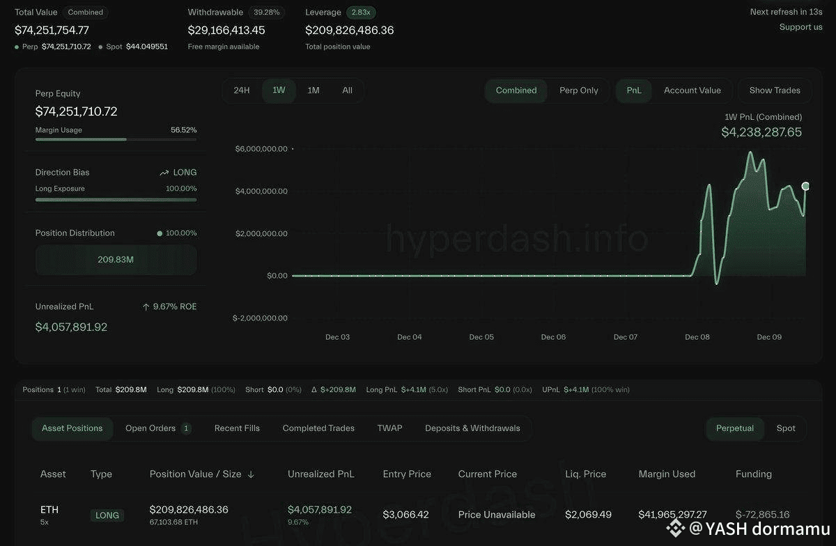🔜He is sitting on 4 million dollars in unrealized profit with a liquidation price of 2,069.49.