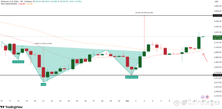 Valid Breakout Pattern: The price move holds the validity of the late-November inverse head-and-shoulders pattern, which remains intact as long as ETH stays above the right-shoulder support at $2,710.