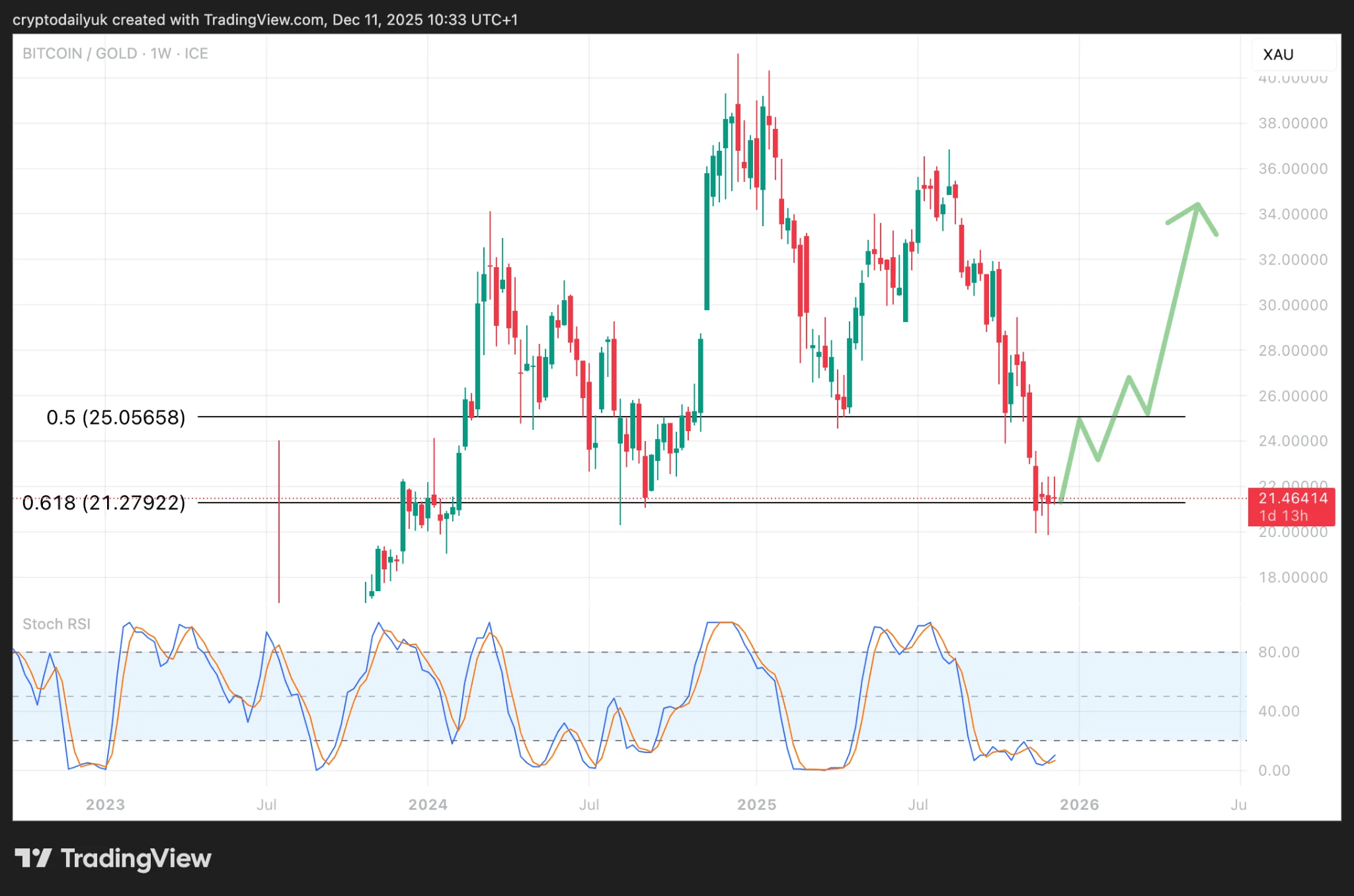 Gold has been unstoppable, outperforming Bitcoin since late 2024. An additional 48%! But, my people, the BTC/GOLD ratio hit a key support point (the Fibonacci level 0.618) and the indicators of $BTC are at the lows of the larger periods (weekly, biweekly, monthly). This is like a spring that has been compressed to the maximum. It is Bitcoin's turn. Be alert, because that ratio is going to change and $BTC will start to dominate the precious metal.