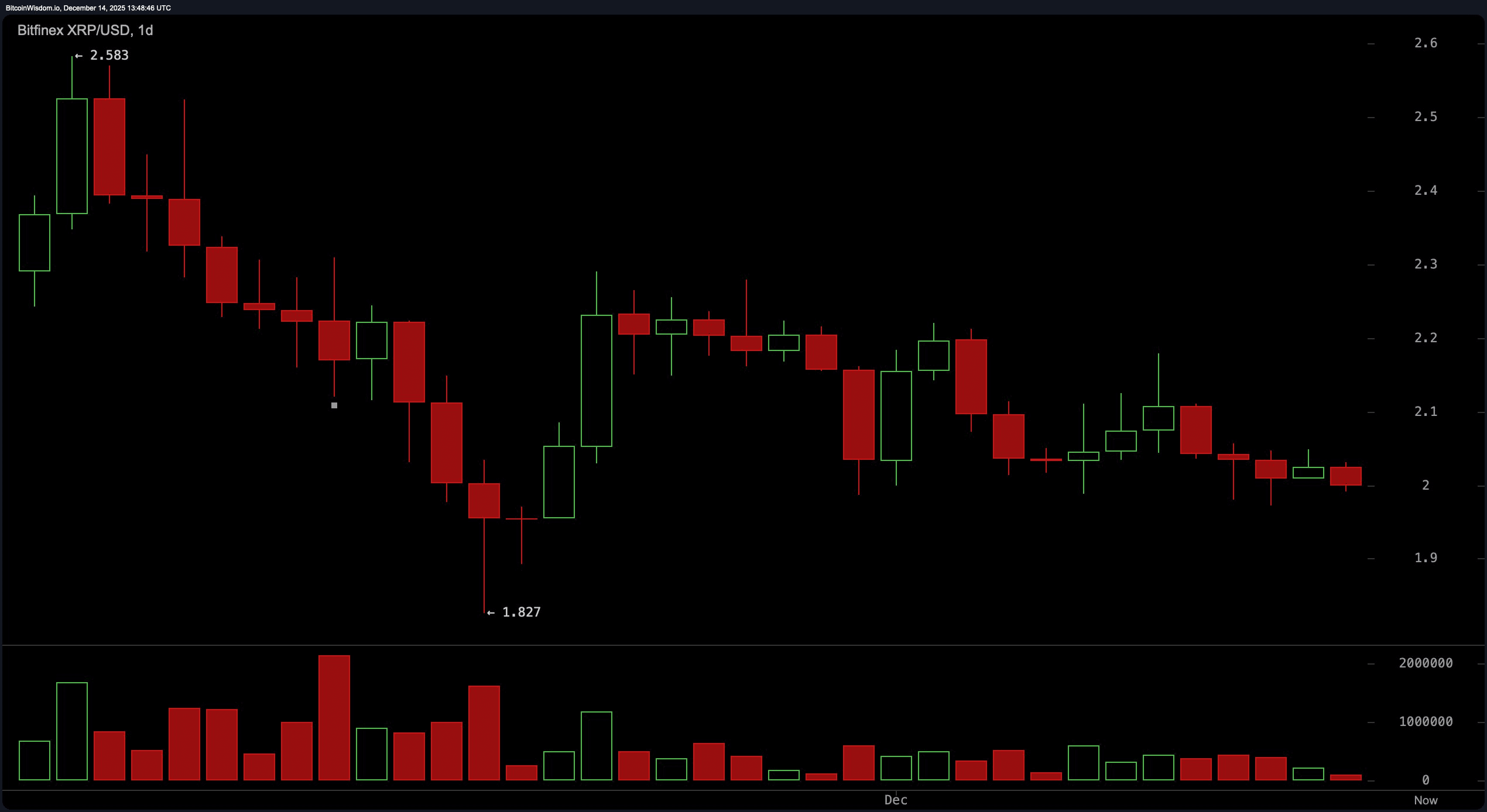 The daily chart resembles a romance-sasouns. XRP is trapped, compressed under the previous high of $2.58 and supported by a reactive low of $1.83.