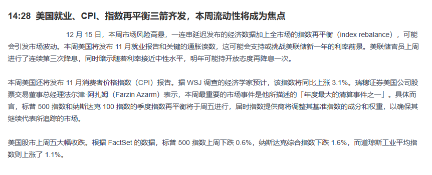 The Americans are going to release two nuclear data points this week: CPI and employment report. This directly determines whether the Federal Reserve will continue to cut interest rates next year or take back their words.