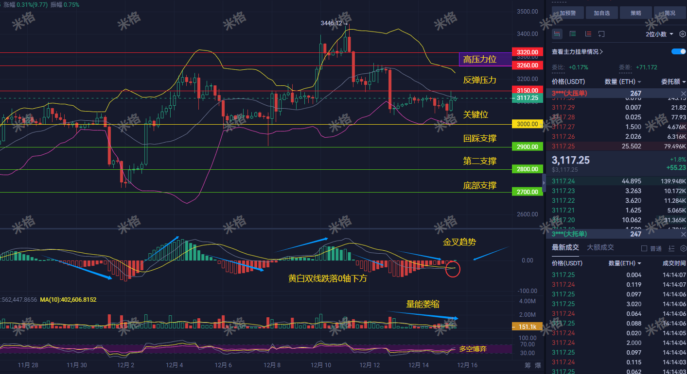 My view is very clear: this is the dividing line between bull and bear at the daily level. The 4-hour chart looks like a rebound, with MACD golden cross below the zero line, like a warrior ready to charge. But in front of it is a wall of tempered glass called 3150.