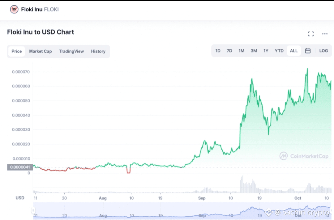 $FLOKI continues trading as a highly volatile meme-utility coin — combining speculative price behavior with utility products (DeFi, metaverse, NFTs). Technical patterns show oversold and rebound signals at times, but direction depends heavily on broader crypto cycles and how the market values meme coins.
