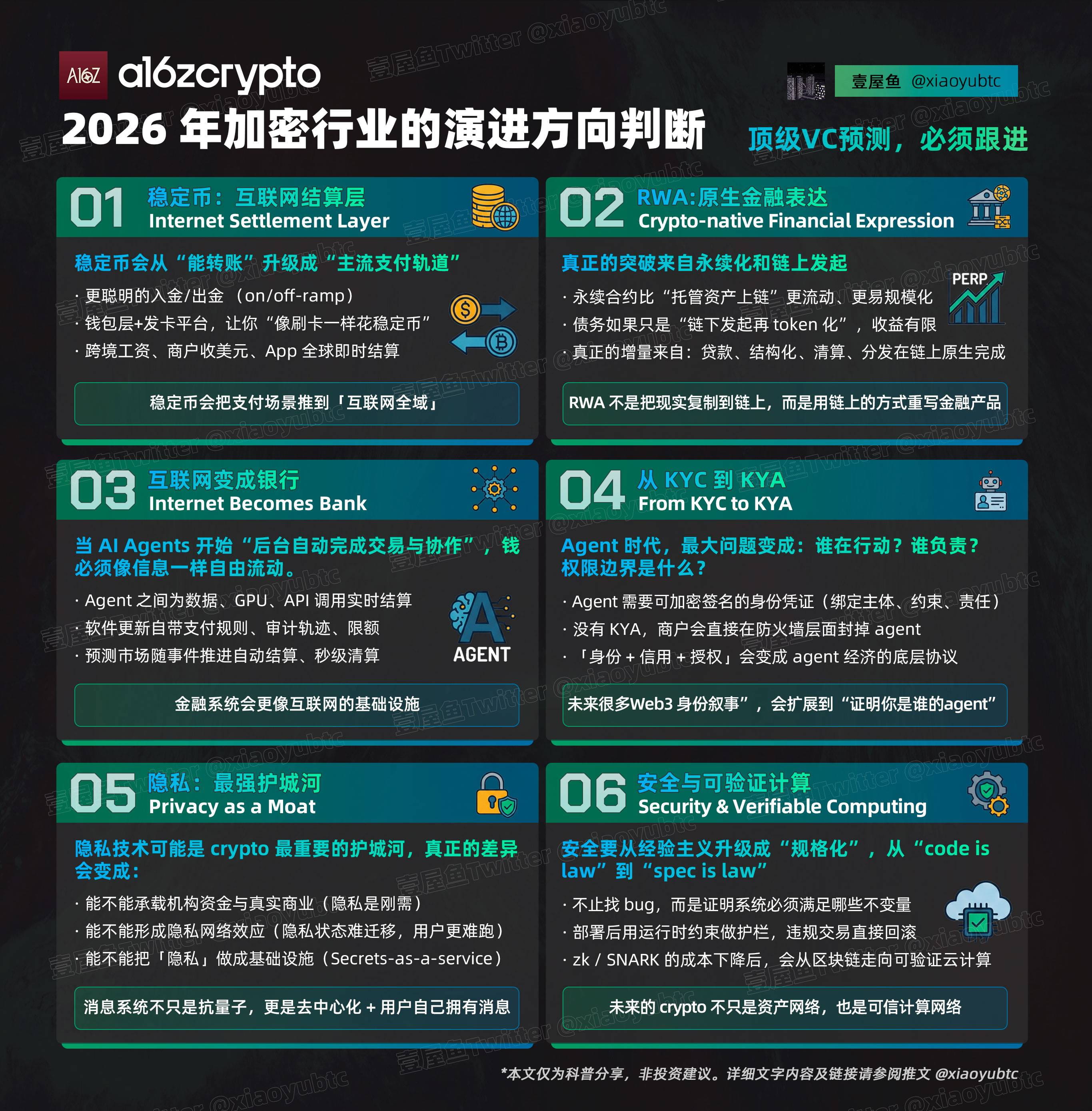 Overall, a16z's 2026 prediction report on the evolution direction of the crypto industry is actually quite pragmatic:
