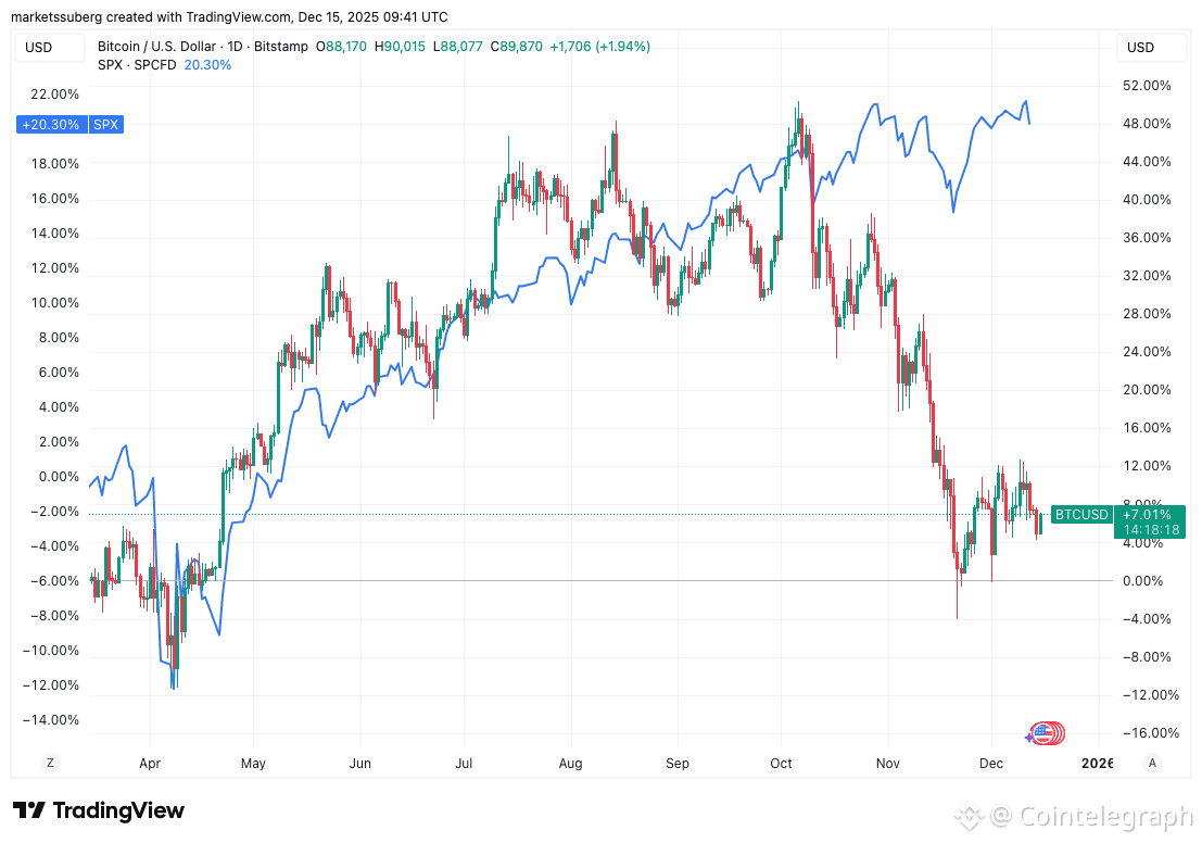 BTC/USD vs. S&P 500 one-day chart. Source: Cointelegraph/TradingView