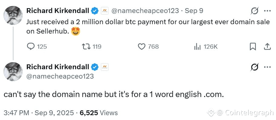 Domain registrars, hosting providers and privacy-focused software companies are among the most visible adopters. Providers like Mullvad VPN allow customers to pay using cryptocurrency, while Namecheap and Porkbun accept crypto for domain registrations and hosting services. On Sept. 9, Namecheap CEO Richard Kirkendall said the company received a $2-million BTC payment for a domain sale.