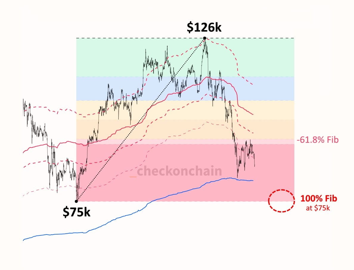 Analysts #Checkonchain note - if #BTC breaks the true average market price around $81,000, the focus will quickly shift to a full Fibonacci correction from the impulse that began after the lows during Trump's tariffs. The level of $75,000 is marked as the baseline for the entire movement, from which the rise to the highs around $126,000 began.