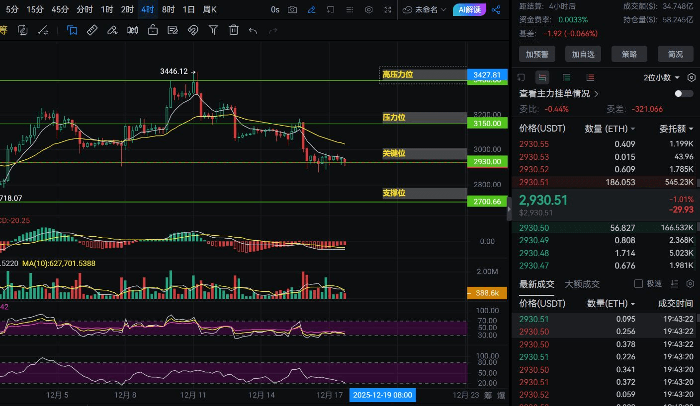 Watching ETH repeatedly jump around this critical position of 2930, are you also sweating in front of the screen? Those who go long feel the trend is still there, unwilling to give up; those who go short see the MACD death cross and are restless. How should we play this hand tonight? Don't worry, we will gradually unveil the mystery.