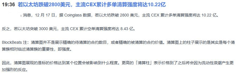 Just now, the market sent a breaking news: If Ethereum falls below $2800, the accumulated long positions in major exchanges will face a liquidation intensity of up to $1.022 billion!