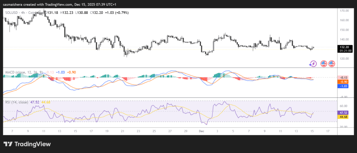 Solana is maintaining relative strength among peers despite a bearish week in the market. SOL has been seen trading around $132 while consolidating in a falling wedge pattern. Institutional demand is emerging as a leading factor fueling positive expectations in the market.