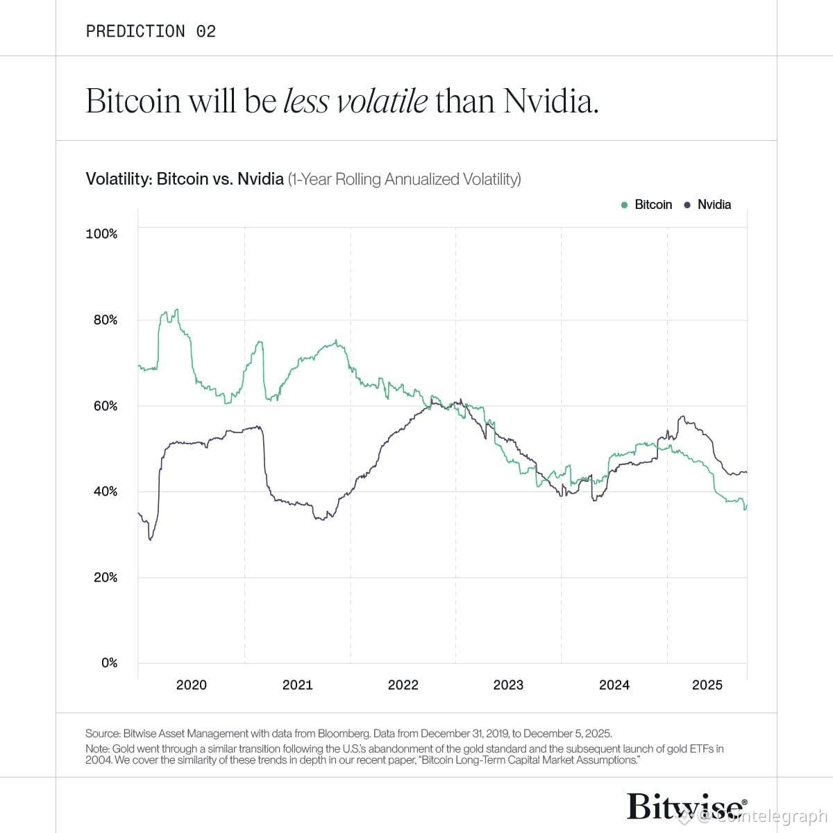 Bitwise says Bitcoin will continue to be less volatile than Nvidia in 2026. Source: Bitwise